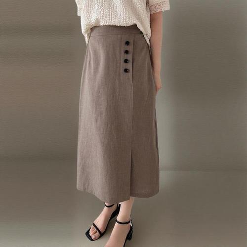 [신상오픈런]여성 버튼 포켓 롱 린넨 H라인 스커트 하객용 (33305767)