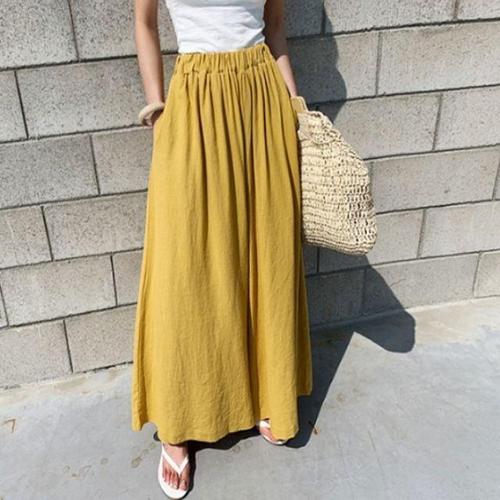 [셀러허브_여성트랜드패션]여름 린넨 허리밴딩 와이드팬츠 치마바지