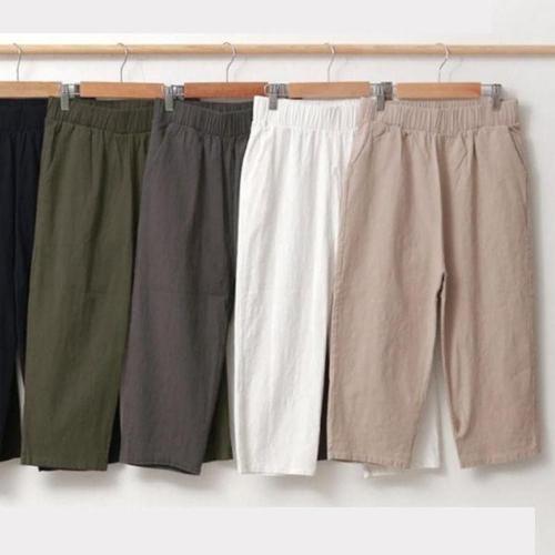 [에이치플러스몰]여름 린넨 7부 바지 여성 마 밴딩 데일리 팬츠