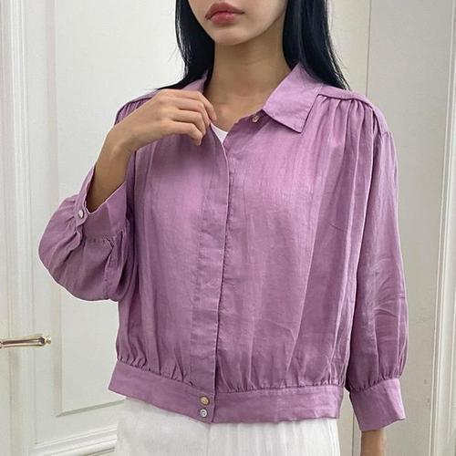 [신상오픈런]여성 린넨 오픈카라 싱글버튼 칠부 블라우스 (35401917)