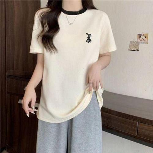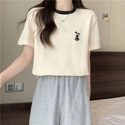 [에이치플러스몰]여성 래빗 캐주얼 자수 링거 필수템 라운드넥 반팔 쇼