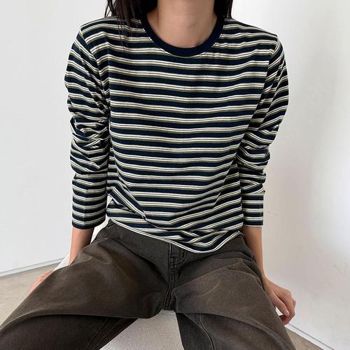 [다잇템_패션]여자 줄무늬 편한 링거넥 라운드 FW 맨투맨
