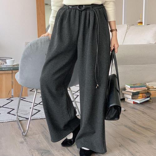 [옷자락] 여자 겨울출근룩 링벨트 맥시 와이드핏 스판 밴딩 바지