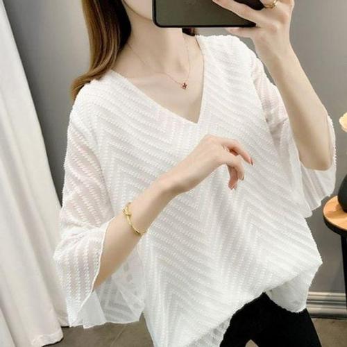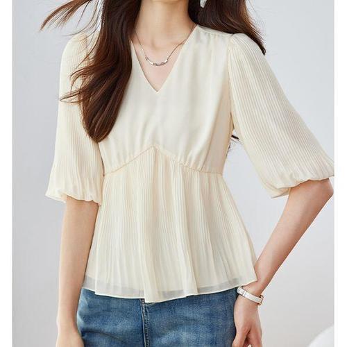 [패션시그널]머신링클패턴 브이넥 블라우스 4DE8AE