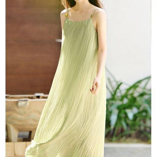 [옷자락] 여성 찰랑핏 링클 스트랩 구슬끈 나시 셔링 롱 원피스