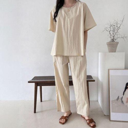 [에이치플러스몰]빅사이즈 링클 반팔티 밴딩팬츠 세트