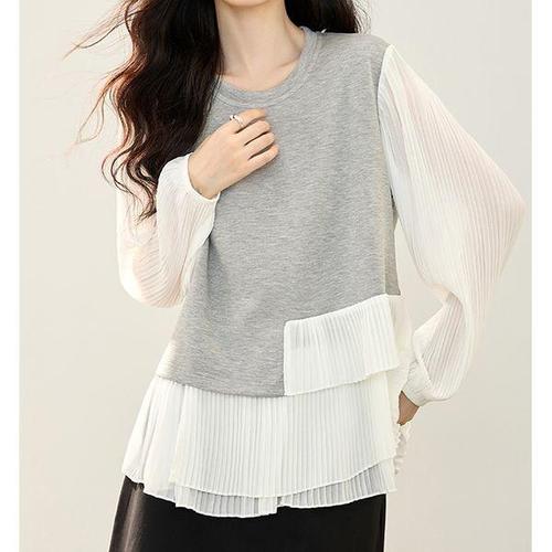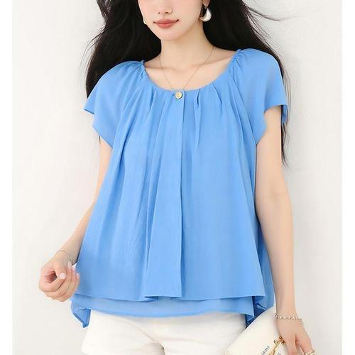 [패션시그널]머신링클 레이어드 라운드넥블라우스 078A49