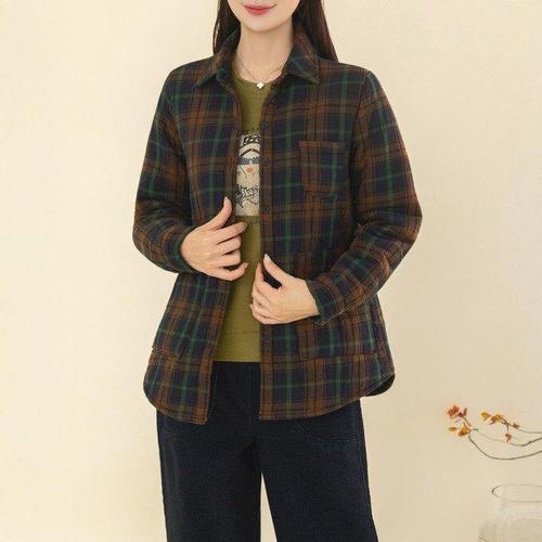 [디얼마미][디얼마미] 딩고 체크 본딩 남방 자켓 /마담 미시 중년 여성 빅사이즈 40대 50대