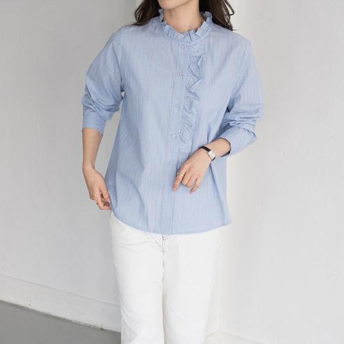 엄마옷 마담4060 [모던베이직]스트라이프버튼프릴셔츠 -QBL2603031-