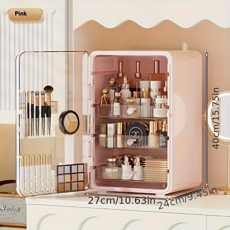 TEMU 접이식 화장품 정리함, 두껍고 튼튼한 플라스틱 제작 - 욕실 세면대, 침대 옆 탁자에 적합한 휴대용 메이크업 수납장, 크림 화이트/화이트/핑크/다크 그레이, 공간 절약형 접이식 디자인, 컴팩트 메이크업 케이스, 향수 정리함