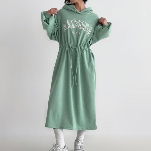 [신상오픈런]애리조나 미국여행 허리끈 벌룬긴팔 오버핏 후드원피스 (30280375)