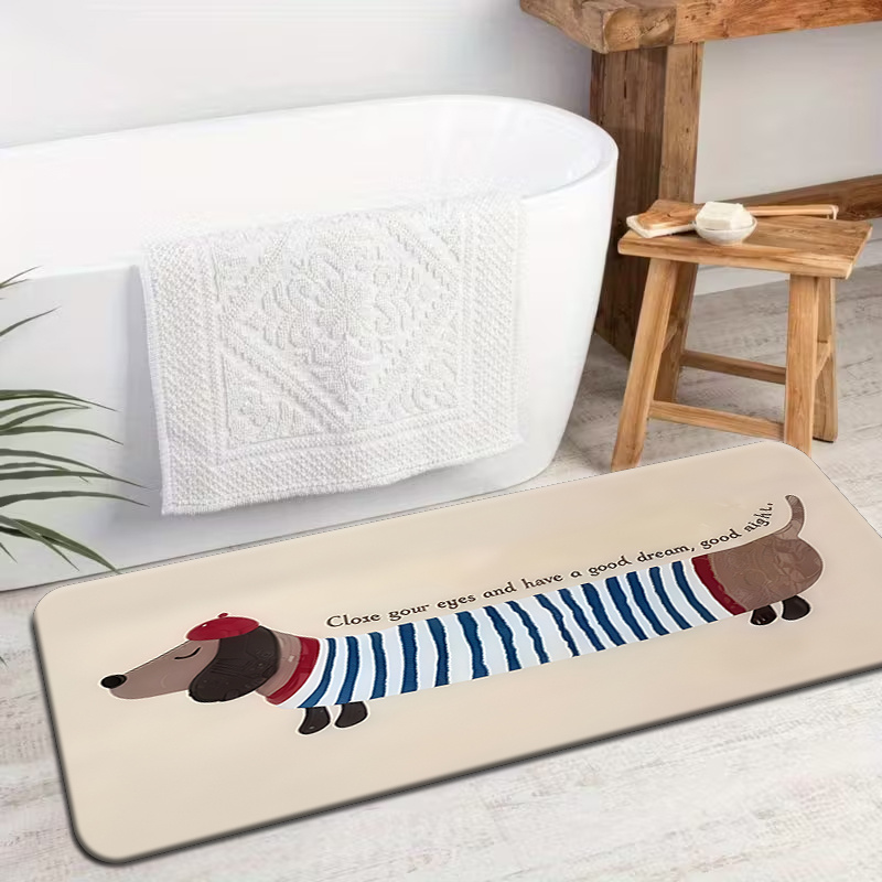 TEMU 1개 두꺼운 플란넬 바닥 매트, 귀여운 강아지 패턴, 간편한 세척, 주방, 출입구, 복도, 욕실 및 세탁실에 적합, 필수 휴일 기념, 소형 면적 카펫, 현관 카펫, 두꺼운 카펫