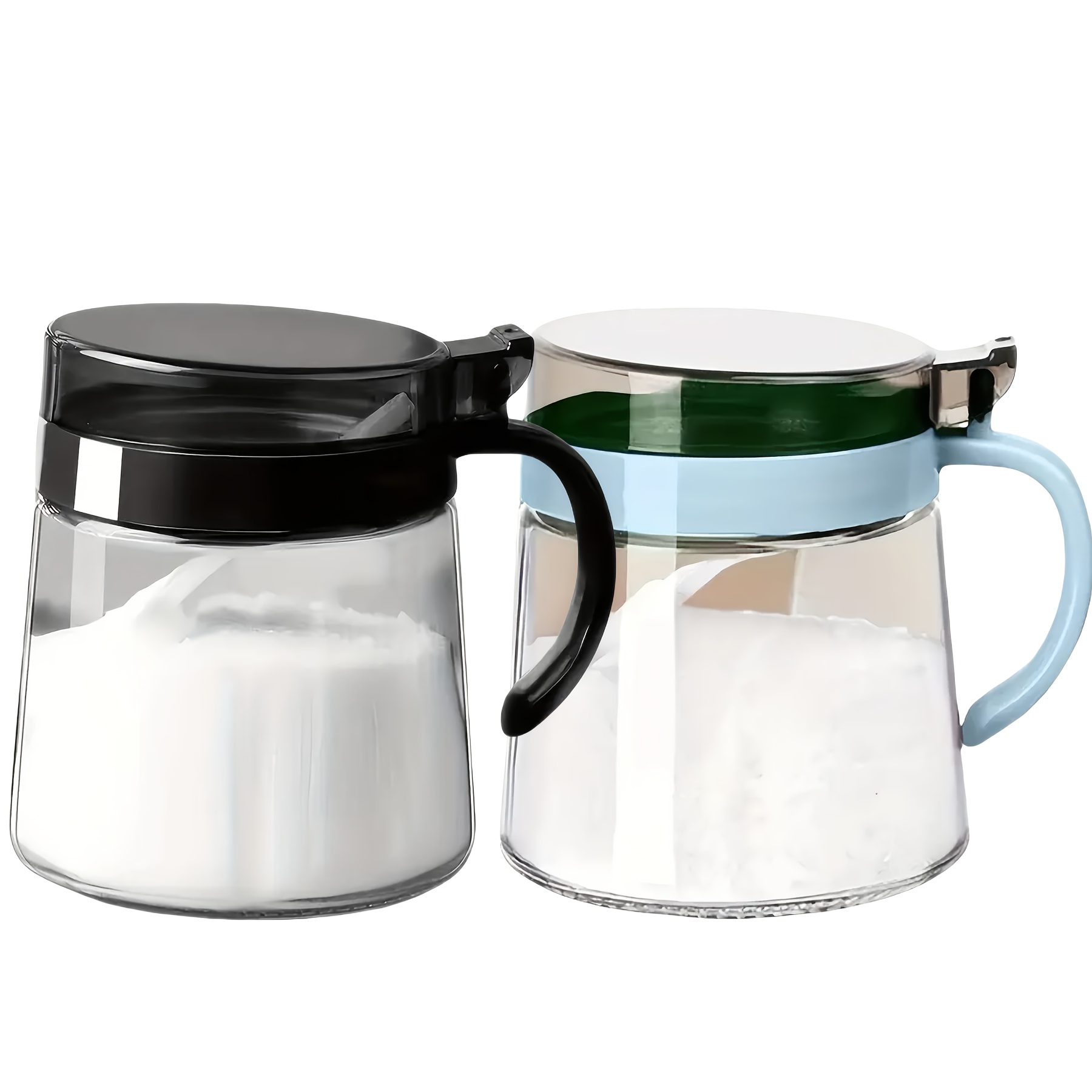 TEMU 2개 세트, 다양한 색상 조합, 뚜껑 있는 고투명 유리 스파이스 병, 투명 안전유리 양념통, 주방 및 조미료용, 향신료, 허브, 조미료 가루 보관 가능
