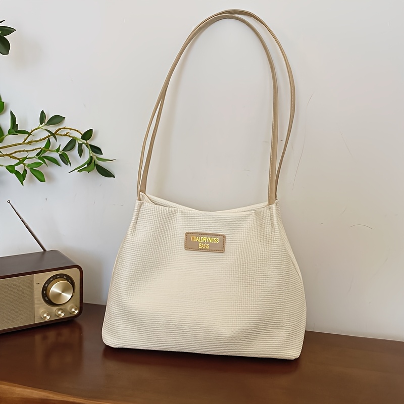 TEMU 여성을 위한 우아한 토트백 PU 패션 텍스처 싱글 숄더백, 인기 및 스타일리시, 다용도 출퇴근 버킷백 (추가 제품 제외)