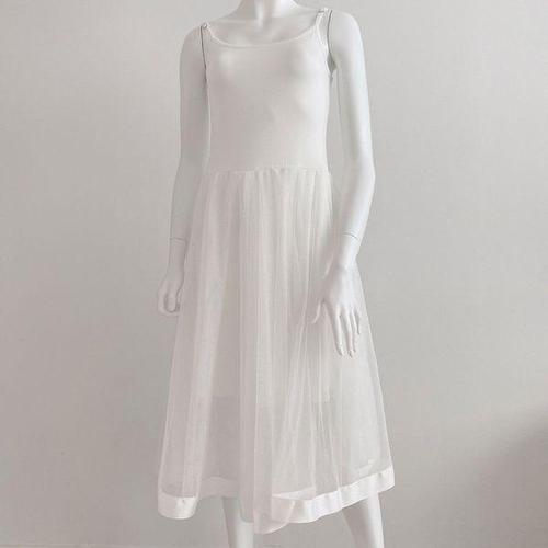 [에이치플러스몰]더블레이어 슬립 망사원피스 화이트
