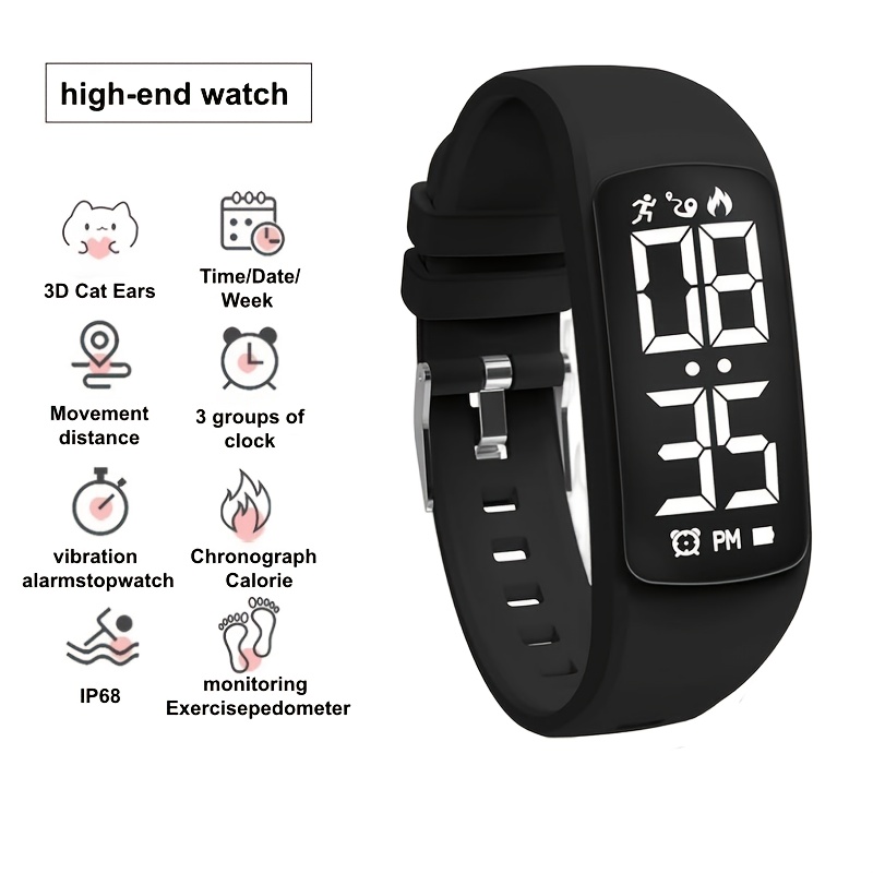 TEMU 블루투스 없는 스포츠 워치 거리 추적 시계 (여성 및 남성용) 만보기 칼로리 카운터 알람 시계 LED 피트니스 워치 고품질 디지털 손목시계 휴일 생일 선물|계산기|손목시계
