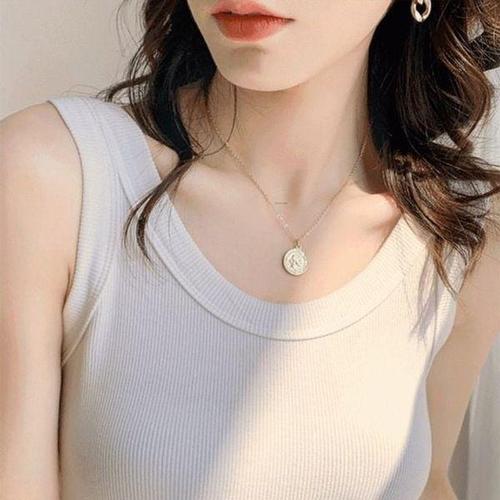 [에이치플러스몰]홀터넥골지망고나시 민소매티 심플