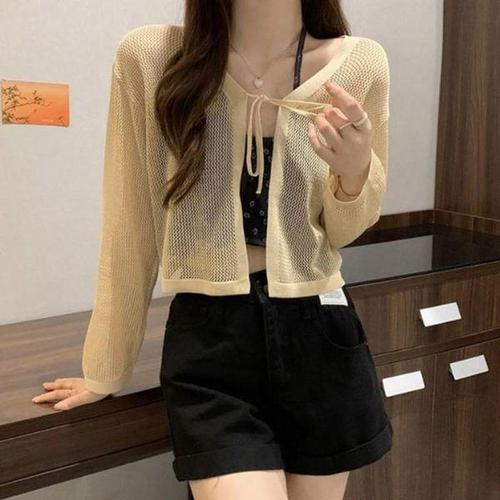 [에이치플러스몰]여성 카디건 시스루 끈 세미크롭 숏 여름 가디건 망사