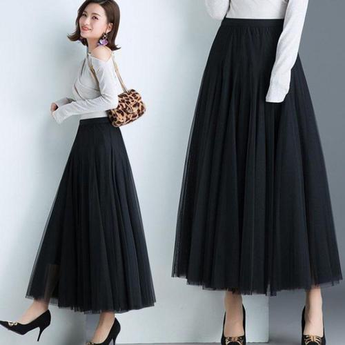 프롬하트 / 풍성한 데일리 허리밴딩 망사 샤 롱 스커트 5color