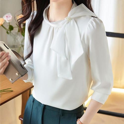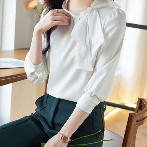 여성 봄 간절기 망사리본 포인트 긴팔 블라우스 긴팔블라우스 간절기블라우스 호이트블라우스 리본블라우