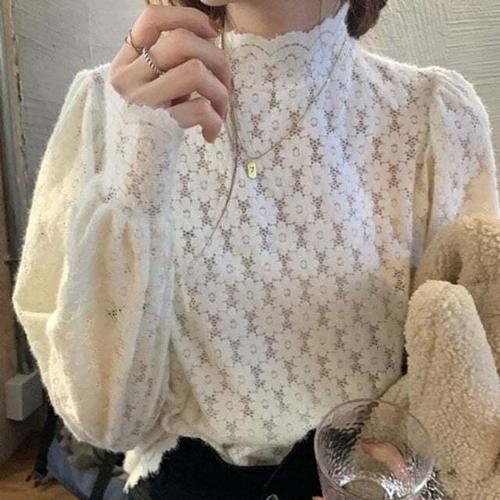 여자 로맨틱 레이스 블라우스 이너 가을 슬림 니트 망사 톱 SPO마켓3