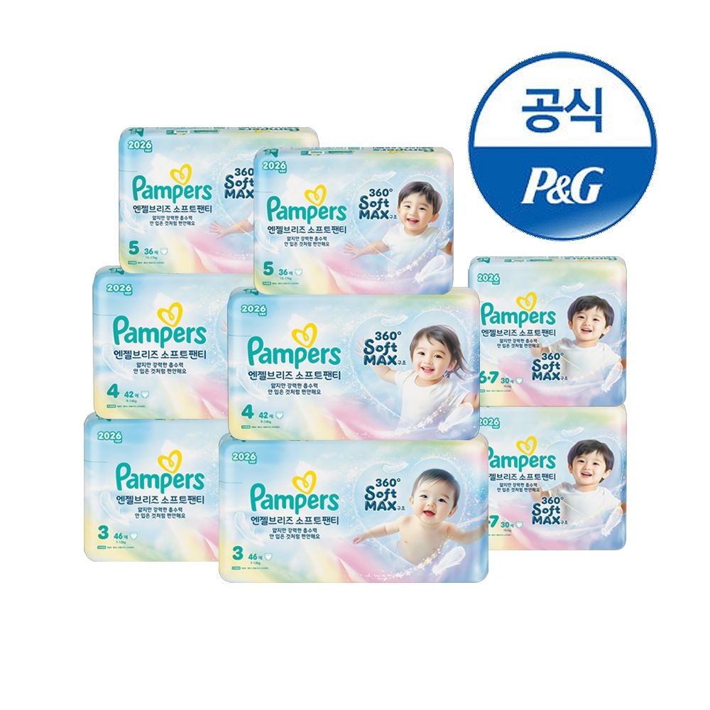 [브랜드쇼] 팸퍼스 2026 엔젤브리즈 소프트 팬티 기저귀 3~6단계 8팩 (총 2박스)+스타