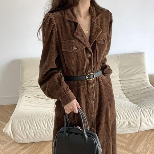 [랄라모션]버튼락 코듀로이 롱원피스 슬리밍 드레스(LLM0046)