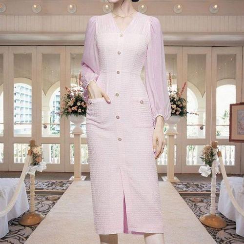 [셀러허브_여성트랜드패션]원피스 버튼 트위드 상견례 드레스 롱 슬림라인