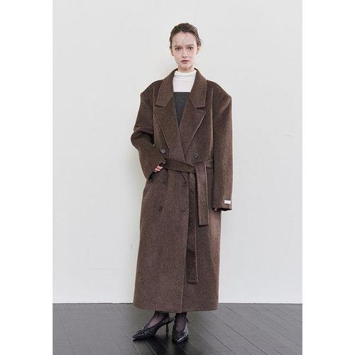 25FW 라쿤울 블렌디드 이중직 벨티드 니트맥시코트