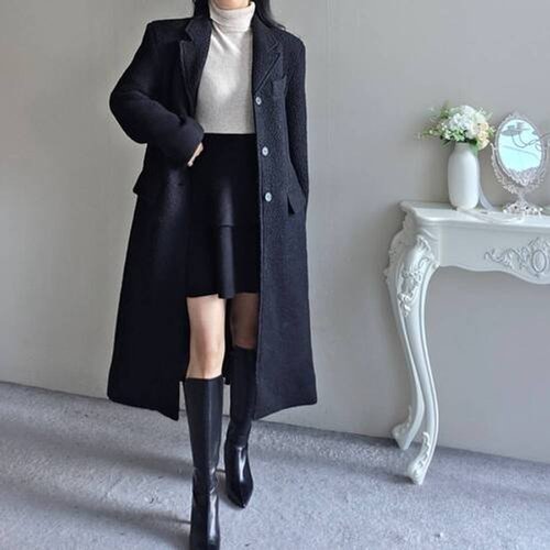 [엘린무드](울60) 젠틸돈나 부클 오버핏 싱글버튼 포켓 롱 맥시 겨울 코트 (2color)