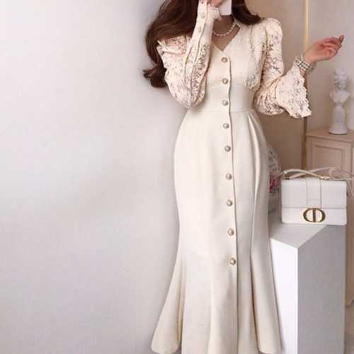 슈팅스타 / 우아한 레이스 봄 간절기 머메이드 하객룩 원피스