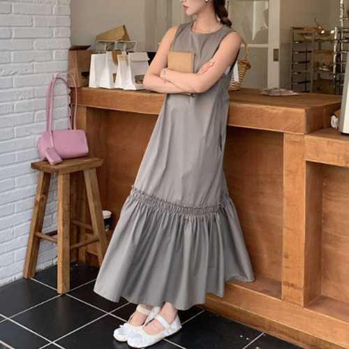 여자 여성 H라인 원피스 니트 민소매 슬림 스판 롱스커트 머메이드 나시 롱원피스 골