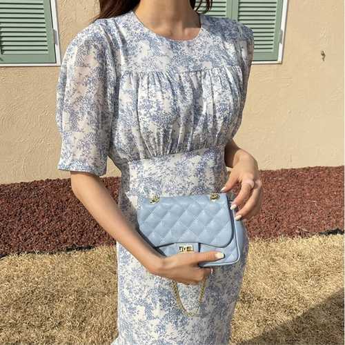 오피스룩원피스 머메이드 하객룩원피스 슬림핏 퍼프소매 롱원피스 여성원피스
