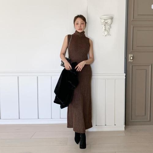 [신상오픈런]퍼원피스 머메이드 슬림핏 목폴라 슬리브리스 겨울 (29414594)