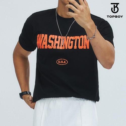 남자 레터링 워싱턴 머슬핏 반팔 티셔츠 (RV003)