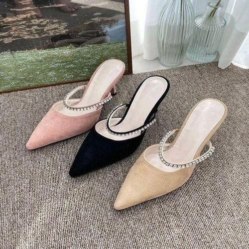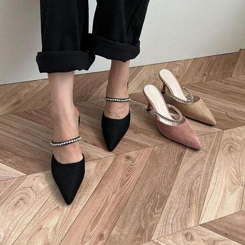 [셀러허브_여성트랜드패션]스웨이드 뾰족코 스트랩 뮬힐 스틸레토힐 메리제인