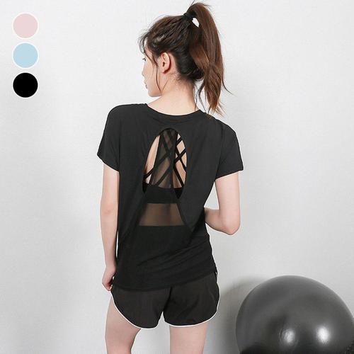 [셀럽하우스]여성 LNNE1553 등메쉬 슬림핏 반팔 스포츠웨어 운동복 상의