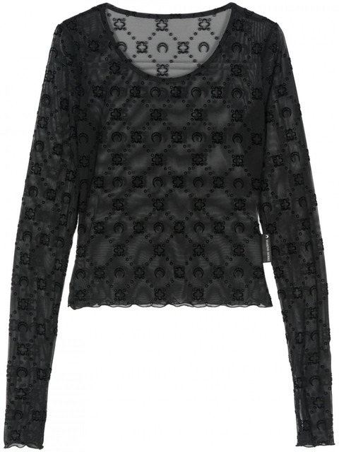 [마린세르] 마린 세르 여성 탑 모노그램 메쉬 FLOCK LS 크롭 WTS012ACJER0005 BK99 블랙 321219