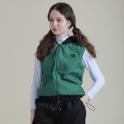 [파리게이츠] (521E3JV101)여성 백 메쉬 셔링 절개선 후드 베스트
