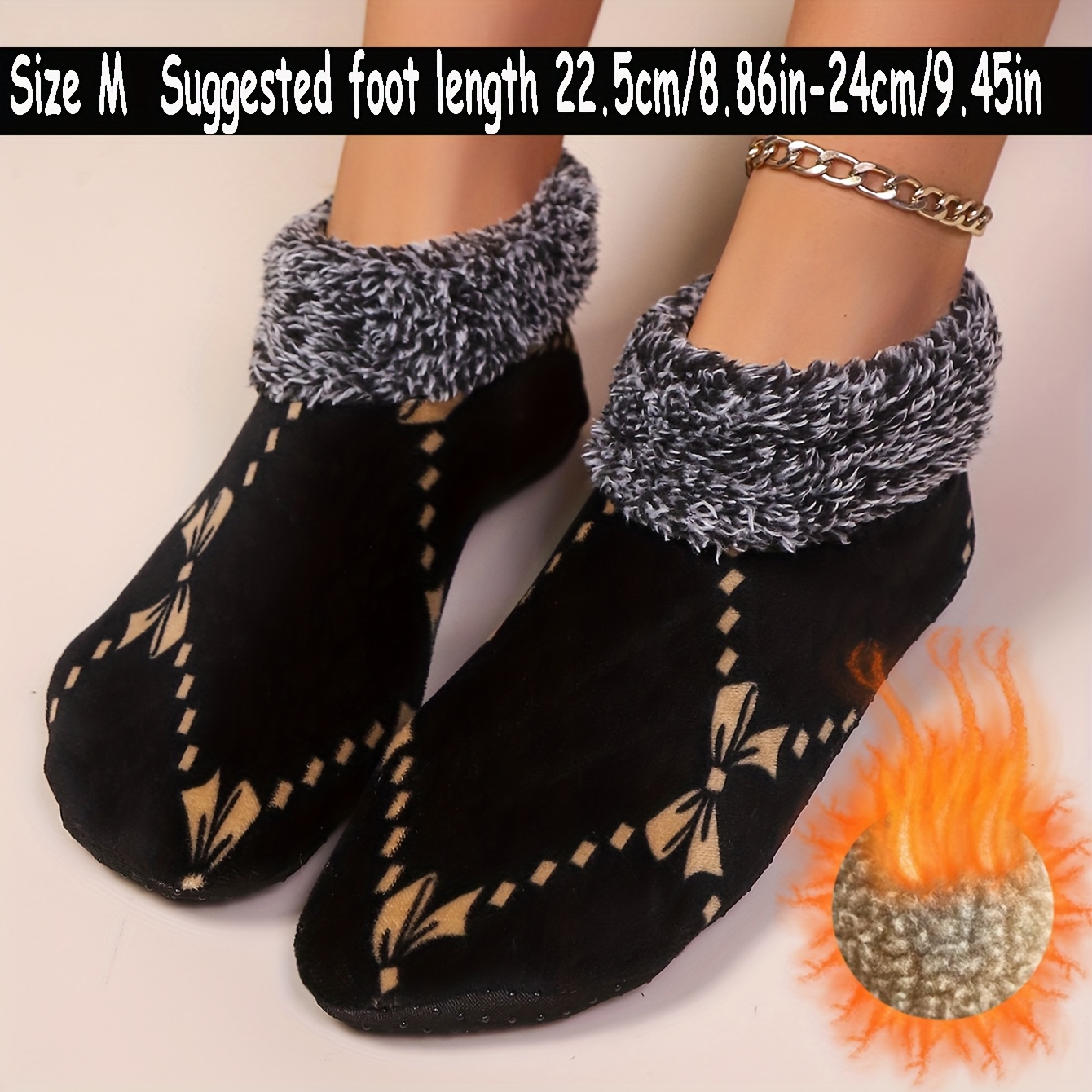 TEMU 리본 프린트 여성용 플로어 삭스 한 쌍, 스타일리시한 신상 플로어 슈즈, 두꺼운 플러시 여성용 슬리퍼 삭스, 다용도 실내용 겨울용 숏 삭스