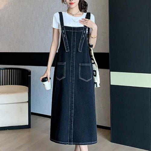 F01200 루즈하고 편한 멜빵청치마 점프슈트 데님멜빵 바캉스 원피스 여성 여성 패턴 사이즈 롱원피스 탑 반