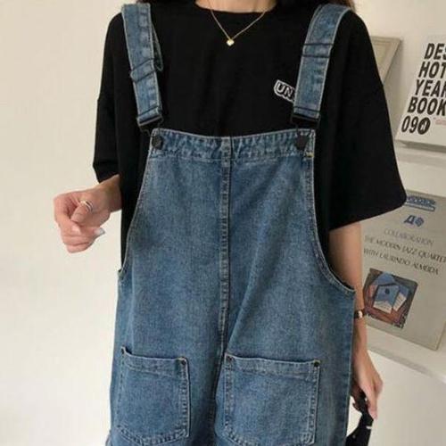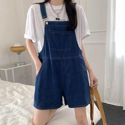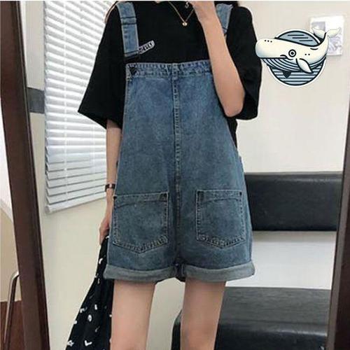 여름 여성용 오버핏 데일리 캐주얼 멜빵 데님 반바지