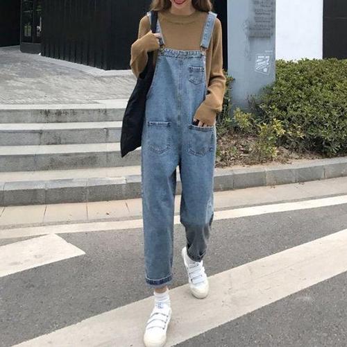 [에이치플러스몰]여자 귀엽고 발랄 점프수트 꾸안꾸룩 데님 멜빵반바지