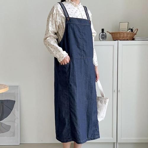 이쁘다요 로미홀리 원피스 멜빵 캐주얼 미디 여성 치마 청 데님 WFLMEMY