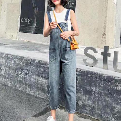 데님 멜빵 끈 원피스 점프수트 캐주얼 트임 오버롤 스커트 TrZ9+5QrJ