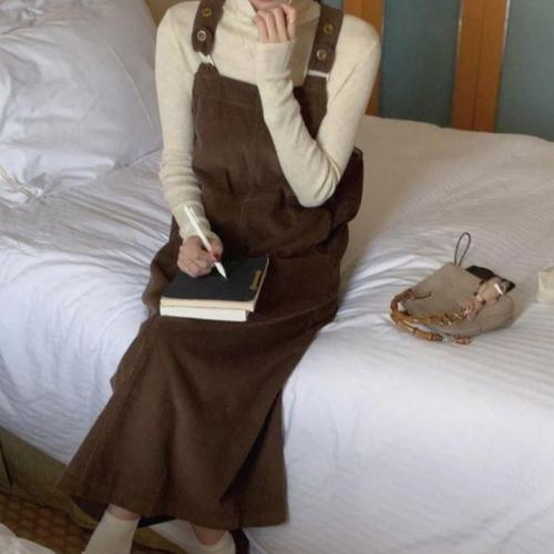 [에이치플러스몰]멜빵 치마 여성 원피스 가을 겨울 코듀로이 캐주얼