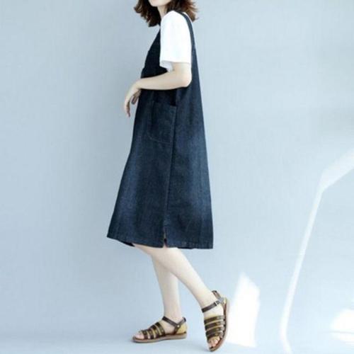 이쁘다요 로미홀리 원피스 멜빵 캐주얼 미디 여성 치마 청 데님 WFLMEMY