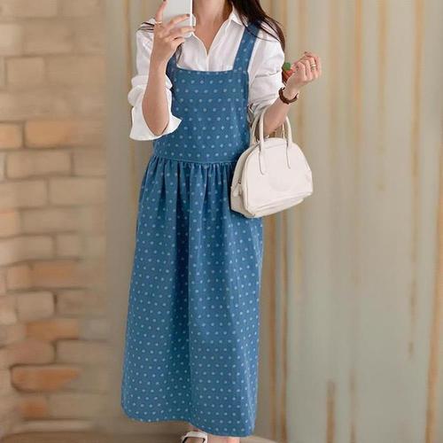 [신상오픈런]여자 청멜빵 백리스 도트 빅사이즈 밴딩 면 롱원피스 (41032775)