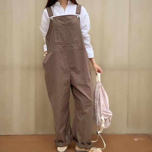 [신상오픈런]여성 대형 와이드 코튼 점프수트 포켓 멜빵 (41316116)