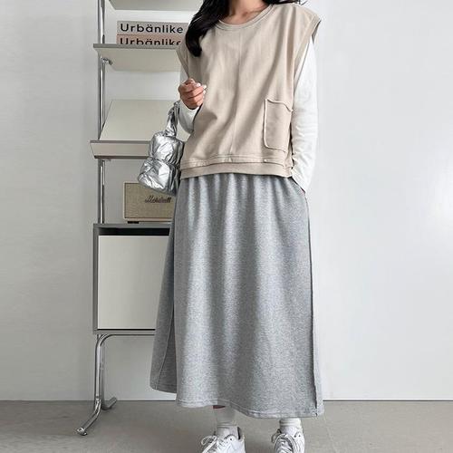 [신상오픈런]여성 A라인 절개 가을 면 롱스커트 포켓 맥시 스커트 (41032700)